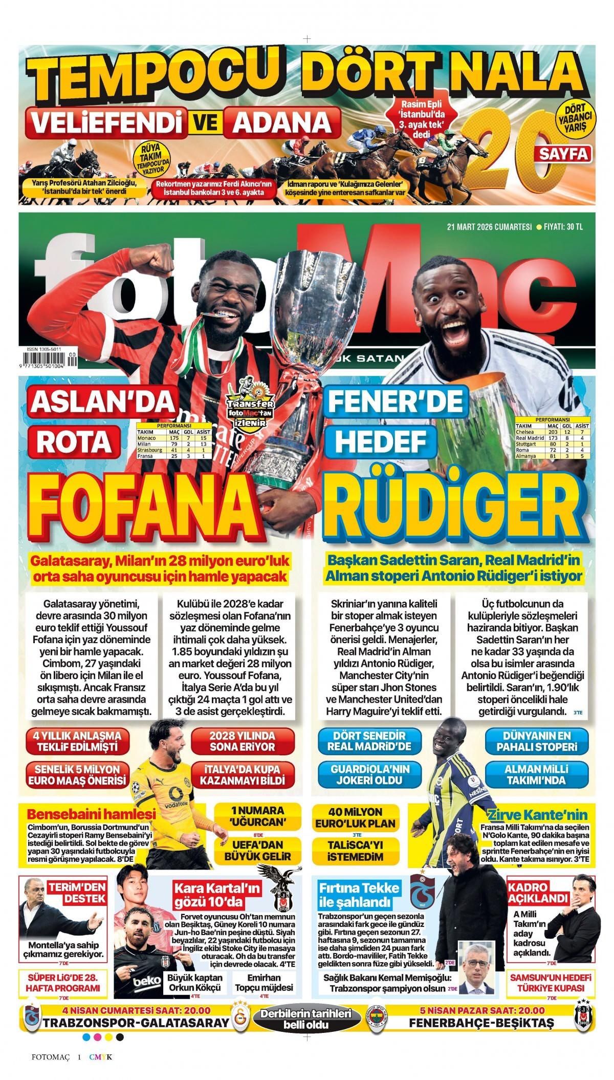 Fotomaç Gazetesi 21 Mart 2026 Günü Manşeti