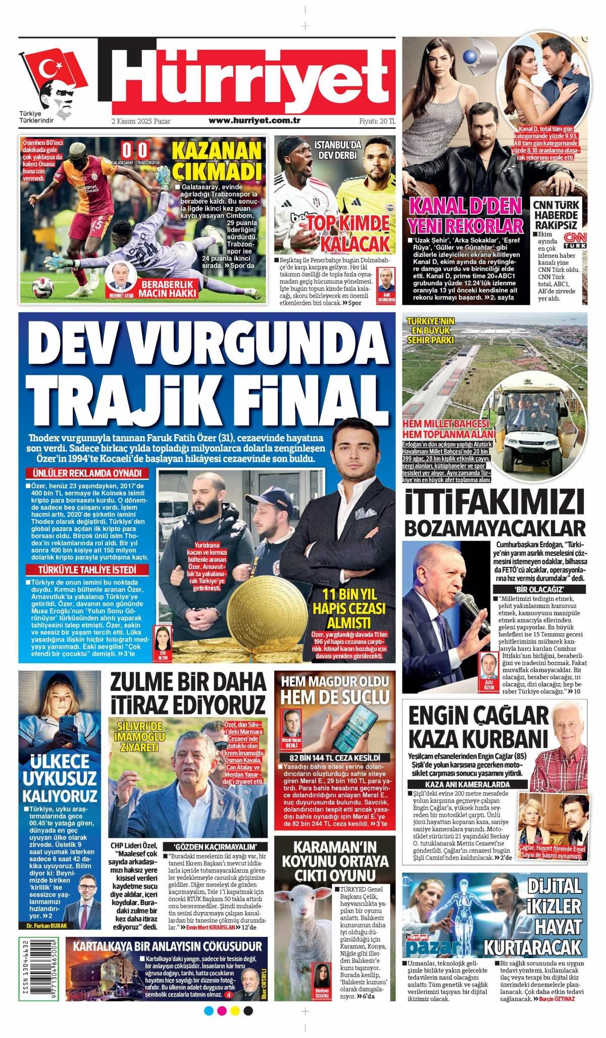 Hürriyet Gazetesi 2 Kasım 2025 Günü Manşeti