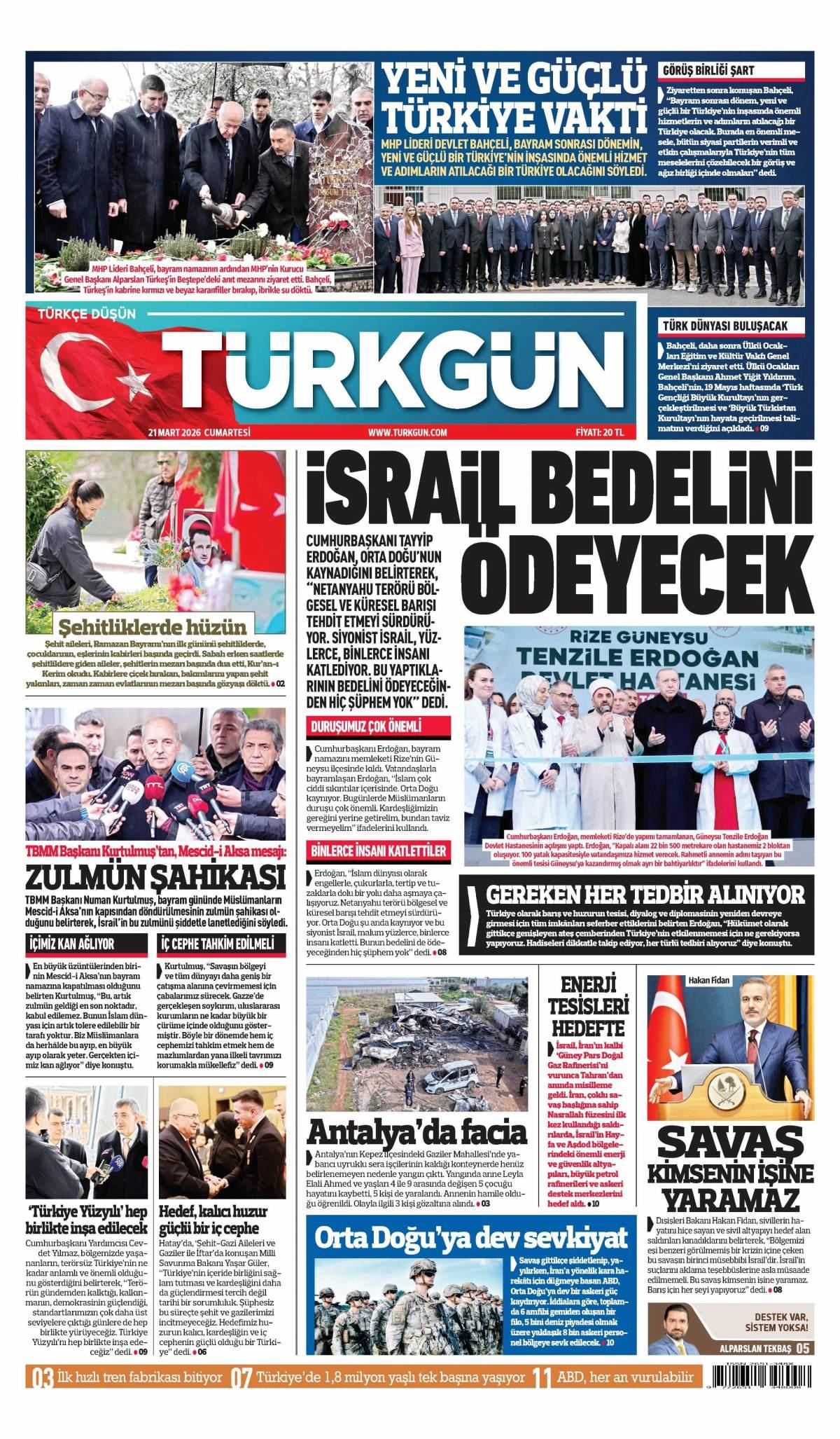 Türkgün Gazetesi 21 Mart 2026 Günü Manşeti